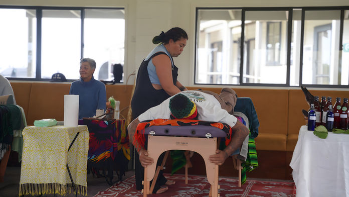 The atmosphere was filled with aroha and kotahitanga as whānau engaged in various healing practices. Miri-miri (traditional Māori massage) was a significant feature, offering physical and spiritual relief to many attendees. Healing through rāranga (weaving) was another highlight, facilitated by Jo Murray and her dedicated team, who shared their skills and matauranga with participants.